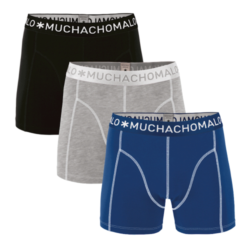 Avec ce caleçon à la mode de la marque authentique Muchachomalo, vous apporterez chez vous un pantalon de qualité au look moderne. Ce pack de 3 contient des caleçons aux couleurs unies : bleu, gris et noir. Le short présente un logo de la marque répété sur la taille élastique, assurant un look sportif et tendance.