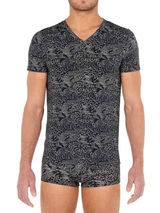 Le t-shirt pour homme NAIROBI est un t-shirt en microfibre au look sexy. L'empreinte fait référence au monde animal. Ses motifs noirs et blancs forment une esthétique aussi sophistiquée, par l'effet de dentelle suggéré, que "nature" par ses évocations de "léopard", "tigre", "serpent"...