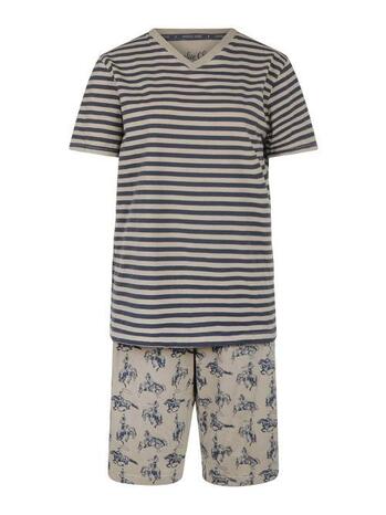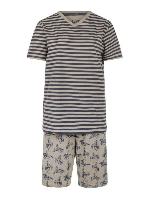 Ce pyjama court Charlie Choe pour homme avec imprimé Rodeo dans les tons sable et bleu foncé est fabriqué en coton merveilleusement doux.
