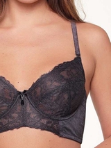 Dark Snake Edgy et cool ! La combinaison de l'imprimé serpent et de la dentelle crée un look audacieux et nerveux. Cette série de lingerie bleu foncé est finie avec du jacquard. Soyez audacieux ! Ce bustier avec armature et bonnets non préformés est fait de dentelle semi-transparente combinée à du jacquard. Les bretelles sont réglables.