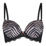 Zèbre rayé Cette gamme de lingerie mix & match, à la fois cool et féminine, est indispensable dans votre placard ! Le soutien-gorge en gel en satin imprimé zébré est associé à de la dentelle noire.