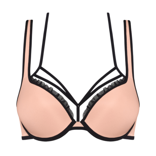 Ce soutien-gorge push up de couleur pêche clair avec rembourrage assure que vos seins reçoivent l'attention qu'ils méritent. Le rembourrage vous offre un soutien supplémentaire, tandis que les minuscules coussinets et les armatures ajustées vous assurent un décolleté vertigineux. Les bretelles noires en tulle volanté encadrent votre décolleté. Optez pour un décolleté irrésistiblement sexy avec ce soutien-gorge de couleur pêche clair.