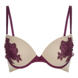 Soutien-gorge push-up tendance dans un coloris tout aussi tendance. Les bonnets à armatures sont en maille de couleur chair et présentent de luxueux appliques de broderie rouge vin avec un motif floral. Des bretelles et des passepoils contrastés rouge vin ornent votre décolleté. Le soutien-gorge et les bonnets remontent agréablement pour un décolleté sensuel