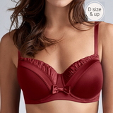 Brûlez de désir avec ce séduisant soutien-gorge balconnet rouge de ma collection Crouching Tiger. Le satin doux fait référence aux élégantes guerrières du classique des arts martiaux "Tigre et Dragon". Des volants séduisants le long de votre décolleté et un nœud subtil au milieu constituent la touche finale ultime. Libérez la tigresse qui sommeille en vous ! Ce soutien-gorge à balconnet orne tous les types de poitrine. Cela transforme votre décolleté en un élégant accroche-regard. Les bonnets préformés vous apportent un soutien supplémentaire. Les armatures qui couvrent l'ensemble de la poitrine créent un décolleté modeste. Choisissez ce modèle pour un look élégant et confortable.