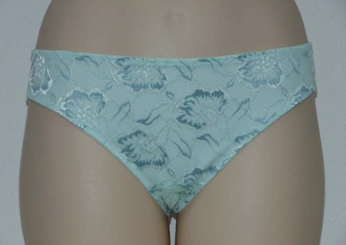 String de la marque After Eden. Le string est sur le dos entièrement en dentelle transparente. La face avant comporte une sous-couche de micro, qui empêche la transparence. La taille et les ouvertures des jambes sont élastiques. L'entrejambe est doublé de coton.