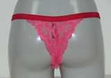 Tanga avec couleurs contrastées rose/rouge et dentelle brillante. Fini avec un bord élastique étroit et des côtés étroits pour un confort parfait.