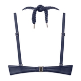 Des plis flatteurs, des cordons tressés, des détails métalliques et un tissu bleu marine brillant... Tout est réuni dans ce haut de bikini push up glamour. Une bride tressée encadre votre décolleté et se ferme au niveau du cou. Les bretelles se croisent sensuellement dans votre dos. Un bouton effronté accroché entre vos seins est la touche finale de charme. Ce haut de bikini met vos seins sous les feux de la rampe ! Les bonnets préformés vous apportent un soutien supplémentaire. Les petits coussinets et les armatures serrées créent un décolleté d'une profondeur vertigineuse. Choisissez ce modèle pour un look irrésistiblement provocant.