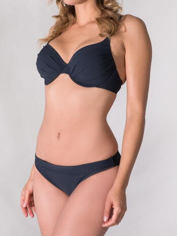Lunettes de soleil sur la tête, cocktail à la main et bain de soleil ! Ce bikini de Bomain est le complément parfait de votre journée à la plage. L'élégant motif à pois et les perles entre les bonnets vous feront briller. Le dos nu (bonnet C/D) sans armature, mais avec un léger rembourrage et un fond rembourré rendent ce bikini très confortable.