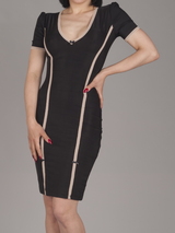 Une robe à la fois élégante et coquine, chez Peter Domenie, c'est possible. Cette petite robe noire unique avec ses manches courtes plissées, son ruban décoratif de couleur crème et ses nœuds sucrés crée un look élégant. Comme la robe épouse votre silhouette, elle met en valeur tous vos points forts. Ce modèle de Peter Domenie est astucieusement coupé et comporte des coutures partielles là où vous voulez de l'espace. Vous trouverez cet ajustement inégalé exclusivement chez DDO. Sur=stock !