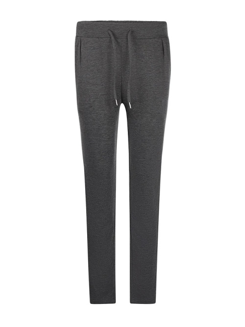 Ce pantalon en tissu de voyage gris foncé fait partie de notre collection de vêtements d'intérieur pour femmes. Ce pantalon Charlie Choe est idéal pour se détendre sur le canapé, mais aussi pour voyager. Le tissu de voyage est durable, confortable et sèche rapidement. Un pantalon idéal !