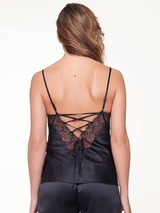 Dark Snake Edgy et cool ! La combinaison de l'imprimé serpent et de la dentelle crée un look audacieux et nerveux. Cette série de lingerie bleu foncé est finie avec du jacquard. Soyez audacieux ! Le haut est composé d'un tissu satiné et de dentelle, ce qui le rend partiellement semi-transparent. La dentelle s'étend des seins jusqu'au dos de la nuisette. Le dos se compose d'un dos en V profond et se termine par un lacet. Les bretelles sont réglables.